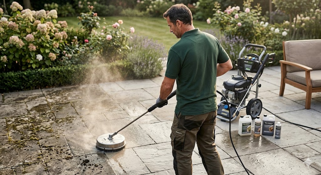 Le printemps arrive et avec lui, le plaisir de retrouver son jardin. Mais après l’hiver, la réalité est souvent moins rose : mousses vertes sur les dalles, traces noires sur le mobilier en bois et saletés incrustées sur les vitres de la véranda.